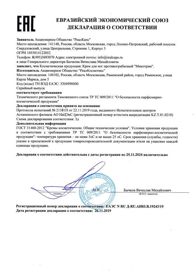 Микотрин® содержит сразу три активных компонента-фунгицида: