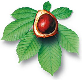 Конский каштан содержит эсцин, который воздействуя на капилляры, препятствует потере жидкости мельчайшими сосудами и обеспечивает противоотёчное действие. Причём, экспериментальным путём доказано, что эсцин в составе натурального экстракта Конского каштана действует намного эффективнее, чем эсцин, полученный химическим путём. Это объясняется тем, что в натуральном экстракте содержатся вещества, усиливающие действие эсцина. Экстракт конского каштана действует примерно в 5 раз эффективнее, чем химические аналоги эсцина. Обладая противоотёчным действием экстракт конского каштана также снижает риск воспалений и разжижает кровь, снижая вероятность возникновения застоя крови в капиллярах.