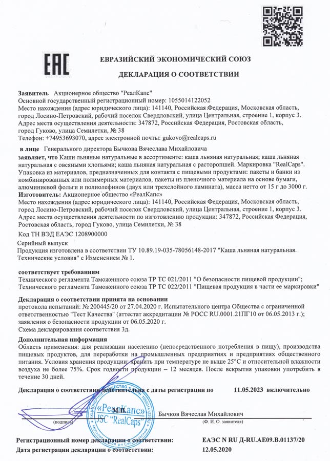 Льняная каша натуральная производится в собственном маслоцехе АО РеалКапс в Ростовской области. Мы тщательно контролируем процесс производства продукта, основываясь на системе принципов обеспечения качества и безопасности пищевой продукции ХАССП (англ. HACCP).