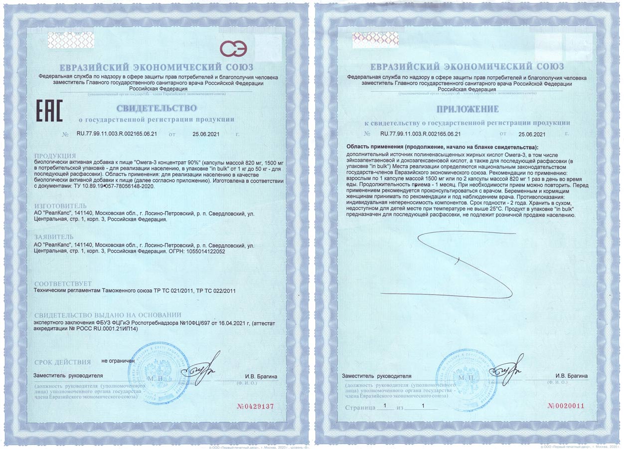 Свидетельство о государственной регистрации № RU.77.99.11.003.R.002165.06.21 от 25.06.2021 г. ТУ 10.89.19-057-78056148-2020.