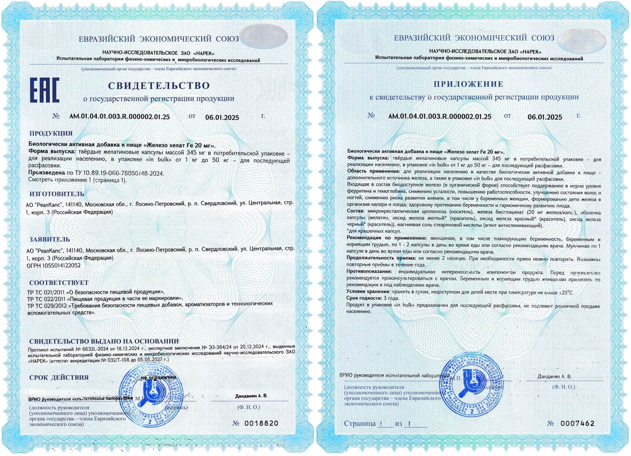 Свидетельство о государственной регистрации № AM.01.04.01.003.R.000002.01.25 от 06.01.2025